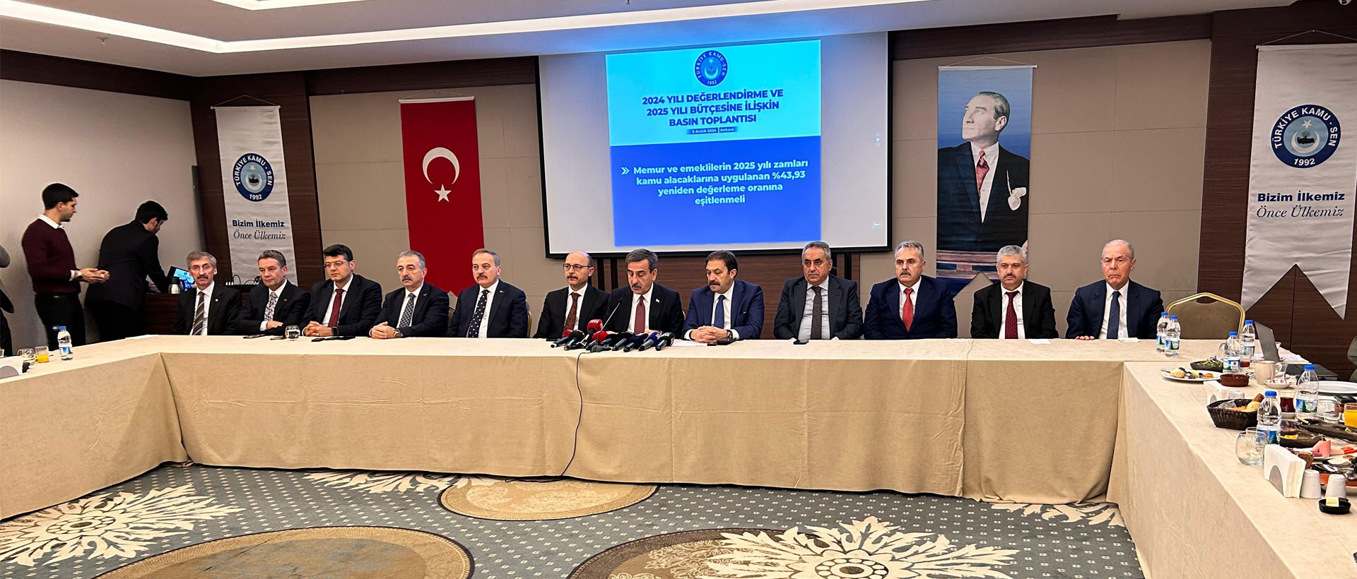2025 yılı Bütçesinin TBMM’de görüşüldüğü bu günlerde memur ve emeklilerimize can suyu olacak tedbir önerilerimizin mutlak surette dikkate alınması gerekmektedir. Bütçeler, milletimizin yıl içinde ürettiği mal ve hizmet değerlerinin ne şekilde harcanacağını ortaya koyan önemli metinlerdir. Ülkemizin her köşesinde deprem, sel, yangın, afet demeden en iyi kamu hizmetini üretmek için çaba sarf eden ve milli gelire büyük katkıda bulunan memurlarımızın beklentilerine cevap verecek bir bütçe hazırlanması hepimizin arzusudur. Beklentimiz, milletvekillerimizin büyük haksızlıklara uğramış ve ekonomik zorluklar içinde bulunan memur ve emeklilerimizi gözetecek kararlara imza atarak 2025 Yılı Merkezi Yönetim Bütçesini memnuniyet verici şekilde TBMM’den geçirmesi yönündedir.  Kamu görevlilerimizin ihmalden kurtulmaları için son bir şans imkânı sunan bu günleri iyi değerlendirerek geleceğe umutla bakabilen kamu çalışanı ailesi yaratmak Yüce Meclis’in ellerindedir. Milletimizin temsilcilerinin, 25 milyonluk devasa bir kitleyi ihmal etmeyeceği inancını taşıyor, toplantımıza iştirak eden tüm misafirlerimize teşekkür ediyorum. Başta kamu çalışanlarımız olmak üzere, sizlerin ve tüm milletimizin yeni yılını şimdiden tebrik ediyor, hepinizi saygıyla selamlıyorum” diyerek sözlerini noktaladı.