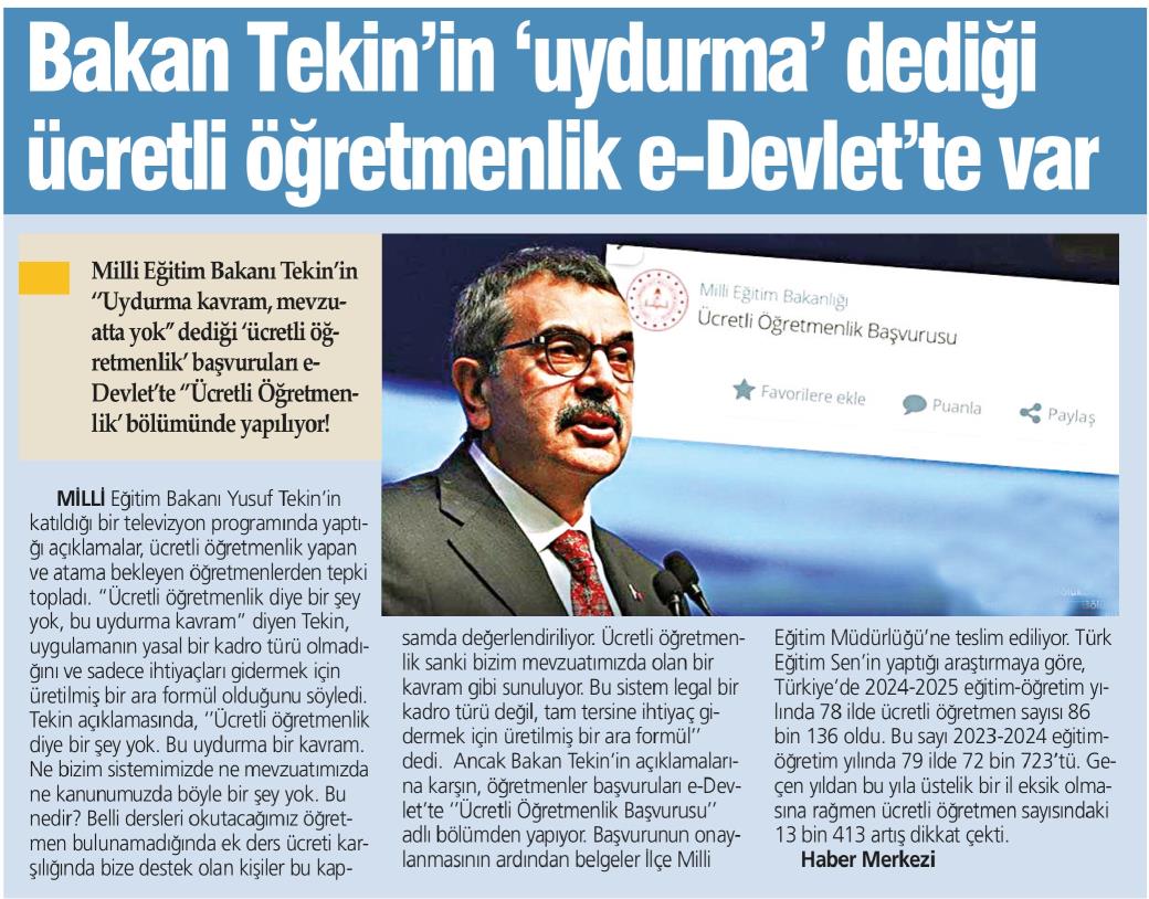 Bakan Tekin’in ‘uydurma’ Dediği Ücretli Öğretmenlik e-Devlette Var – Türkiye’de Yeni Çağ