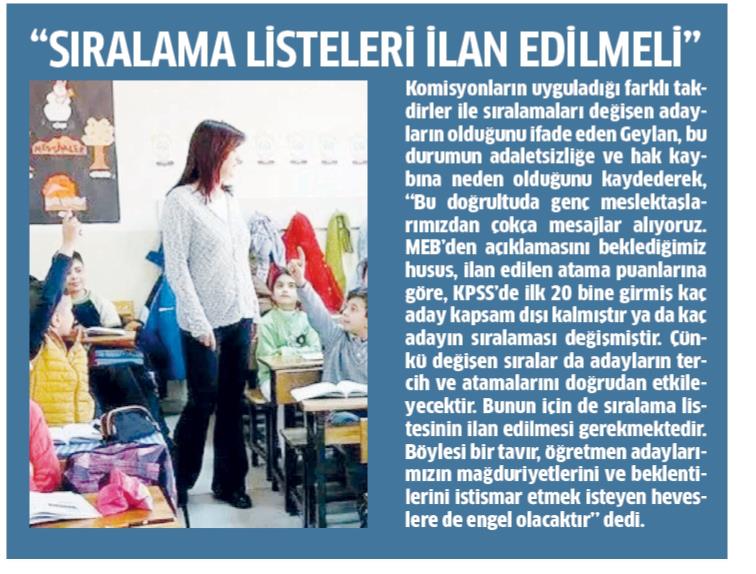 Sıralama Listeleri İlan Edilmeli – Milli Gazete