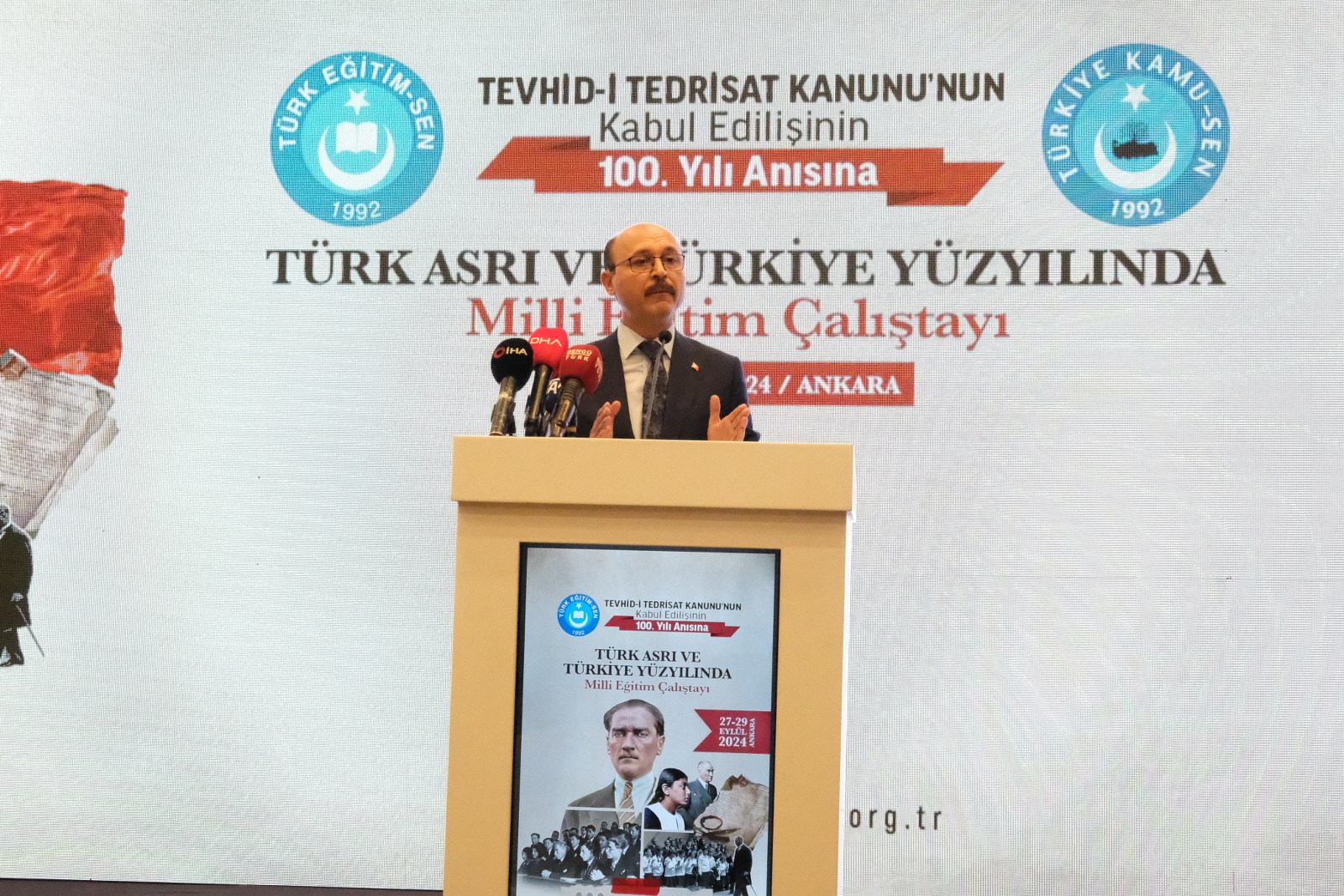 Türk Eğitim-Sen Genel Merkezi’nin, Tevhid-i Tedrisat Kanunu’nun kabul edilişinin 100. Yılı anısına 27-29 Eylül 2024 tarihlerinde düzenlediği “Türk Asrı ve Türkiye Yüzyılında Milli Eğitim Çalıştayı” Ankara’da yapılıyor. Çalıştay’ın açılışına Genel Başkanımız Talip Geylan, Genel Merkez Yönetim Kurulu Üyeleri, Merkez Kadın Komisyonu Genel Koordinatörü ve yönetim kurulu, Ankara şubelerimizin başkanları ve şube yönetim kurulu üyeleri ile […]